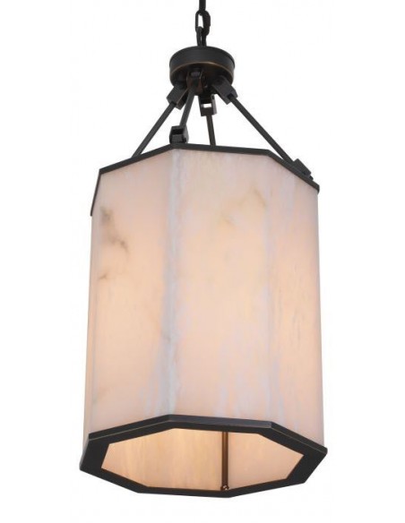 Eichholtz Victoire S lysekrone udført i et flot design af antik bronzelakeret stål og alabaster. Lysekronen måler 35 cm i diameter og 71,5 - 221,5 cm i højden og anvender 1 x E27 lyskilde.