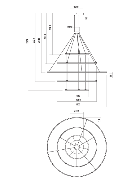 ORBIT lysekrone udført i et design fremstillet i aluminium og akryl. Lysekronen måler op til 250 cm i højden og 150 cm i diameter og anvender 286W LED lyskilder (Inkl.).
