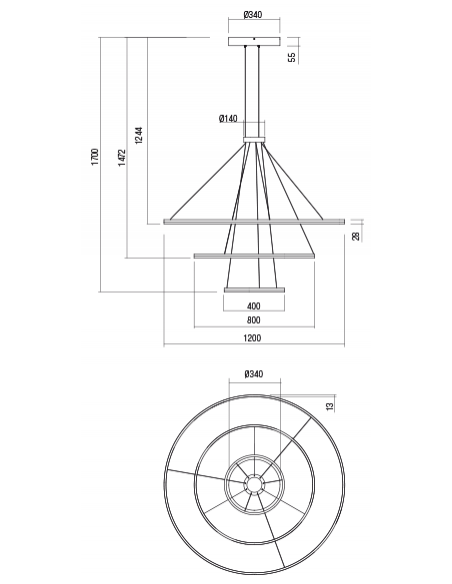 ORBIT lysekrone udført i et design fremstillet i aluminium og akryl. Lysekronen måler op til 170 cm i højden og 120 cm i diameter og anvender 151W LED lyskilder (Inkl.).