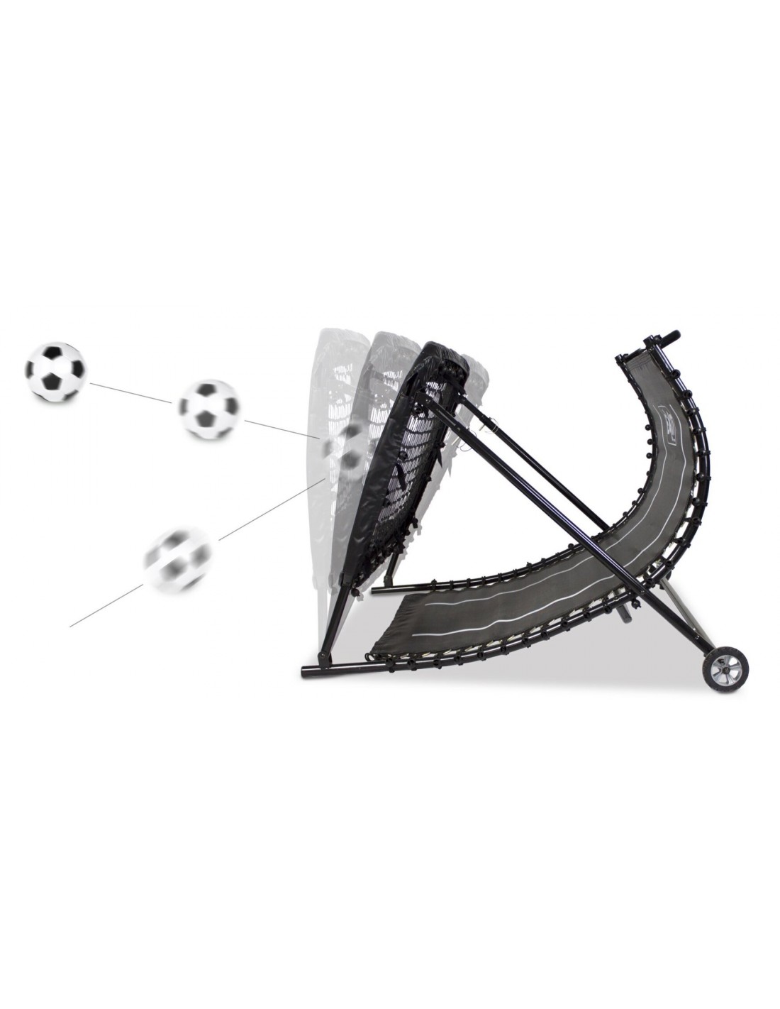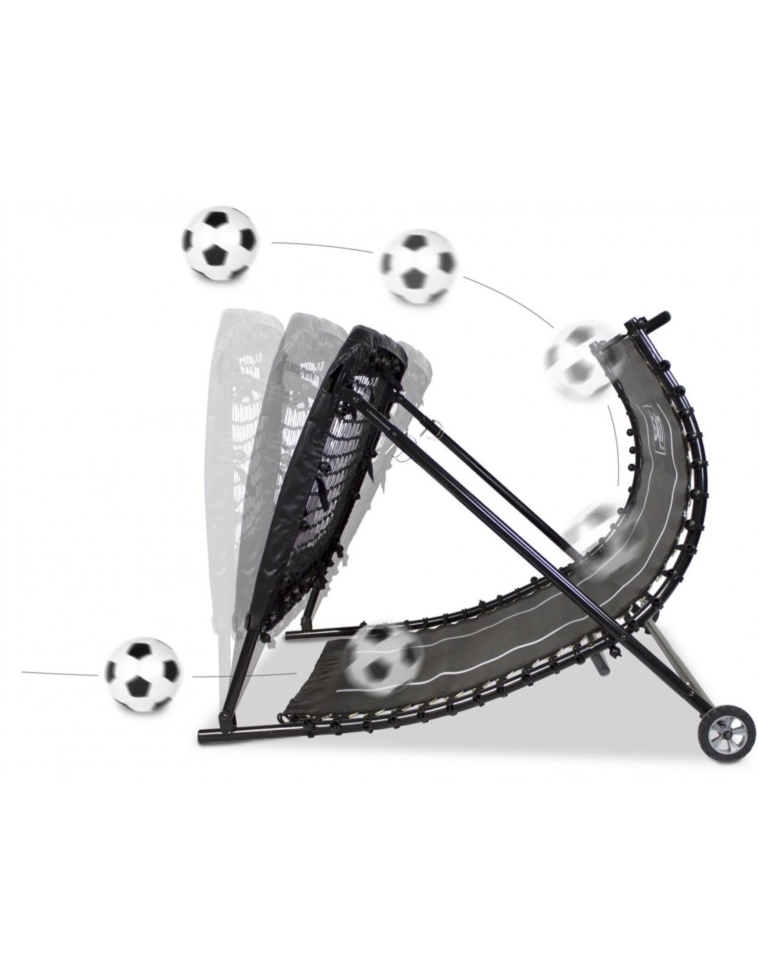 Rebounder i et design fremstillet af robust stål. Rebounderen måler 90 cm i højden og 124 cm i bredden. Hertil 129 cm i dybden.
