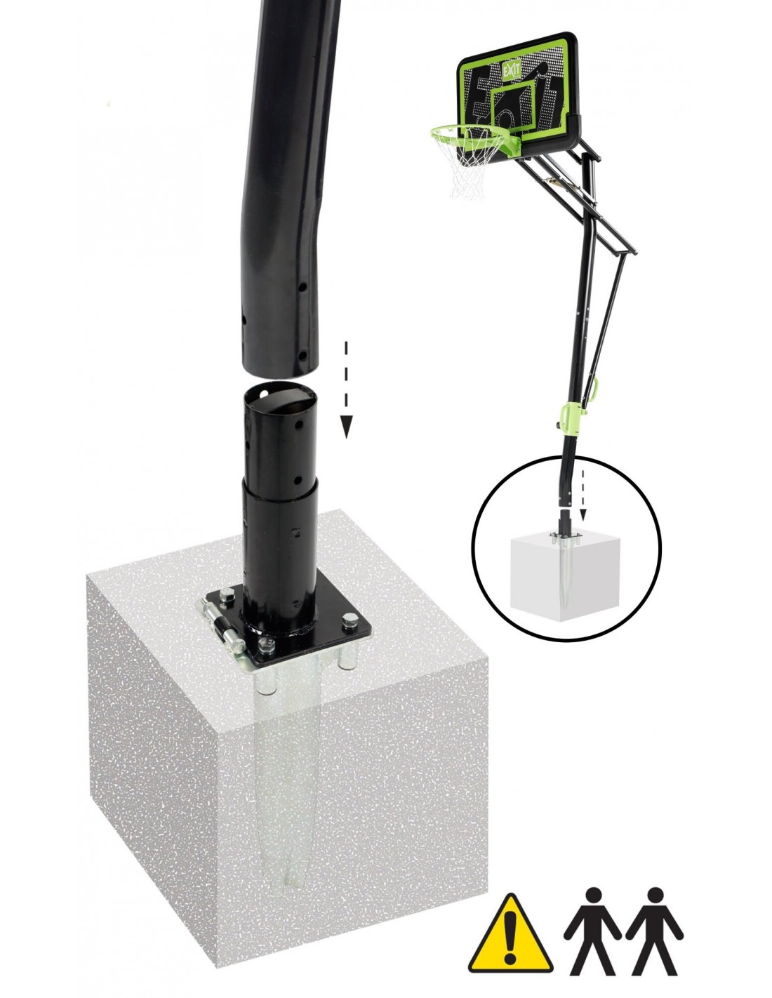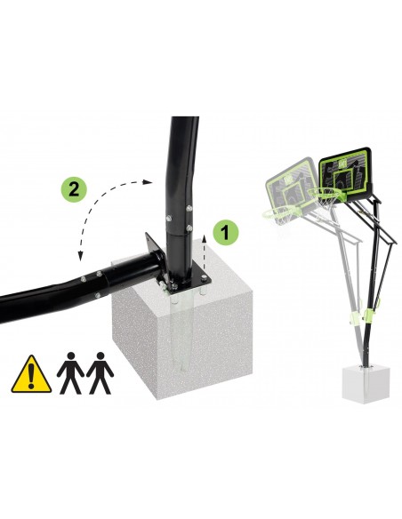 • Dette basketball sæt forankres i jorden, så du ikke kan flytte basketballpladen efter montering