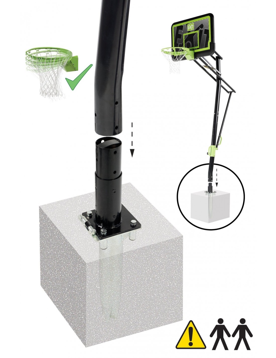 • Dette basketball sæt forankres i jorden, så du ikke kan flytte basketballpladen efter montering
