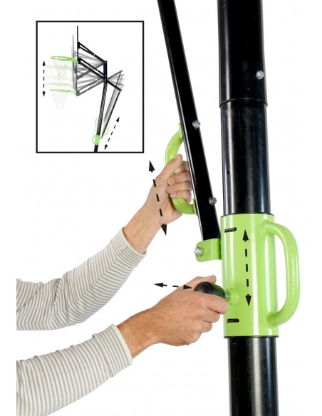 Basketball stang og plade med dunk kurv, udført i et solidt materiale. Pladen er justérbar i 5 højder, således det kan tilpasses de fleste aldre.