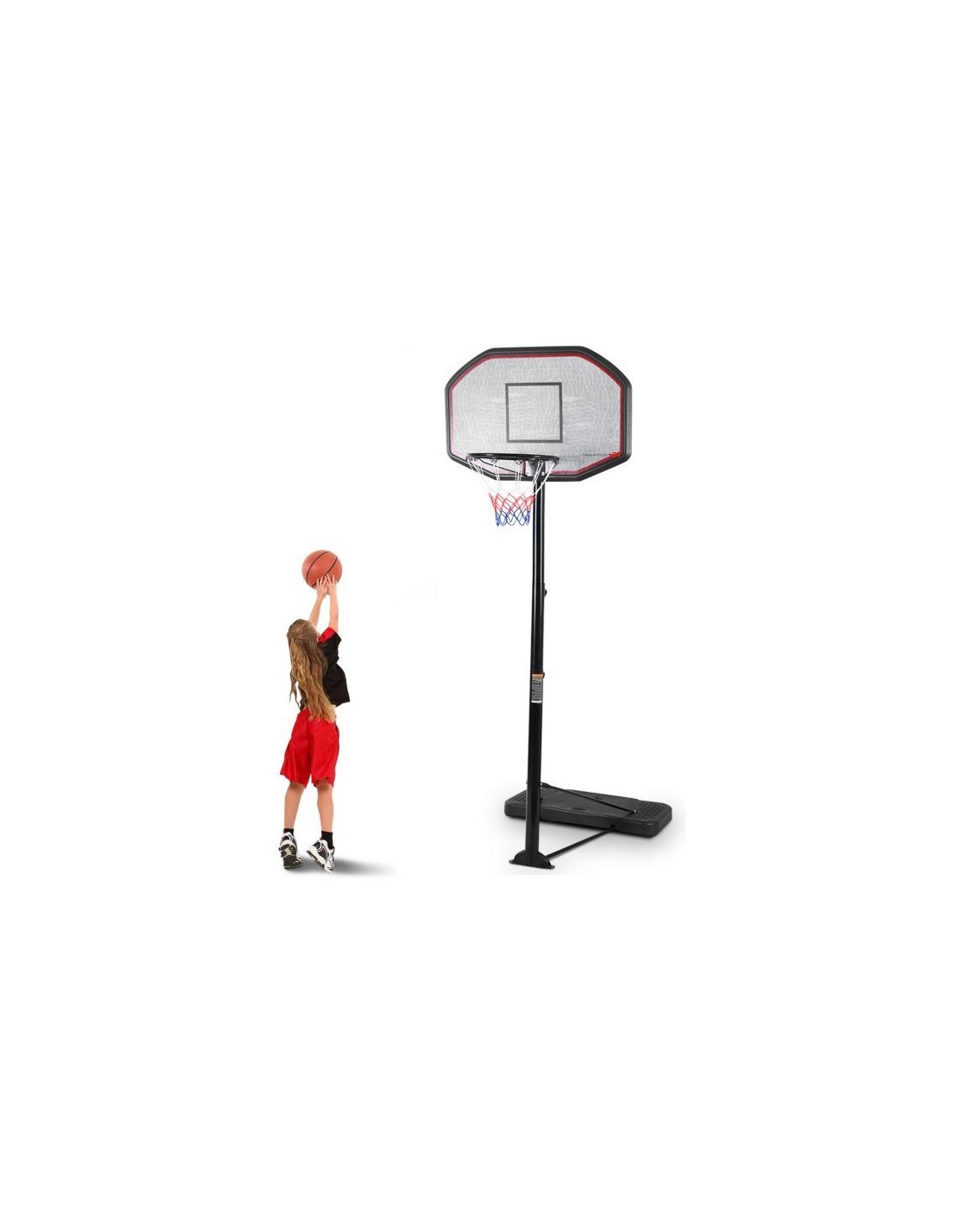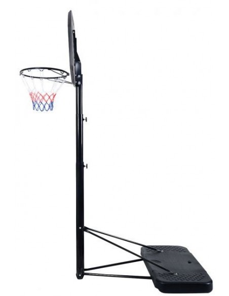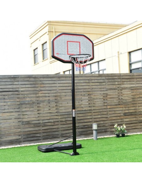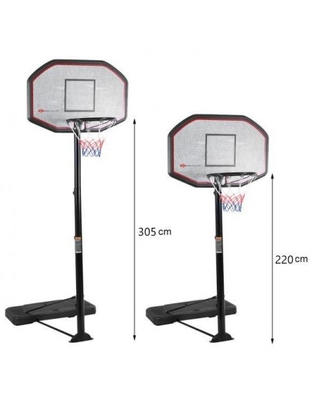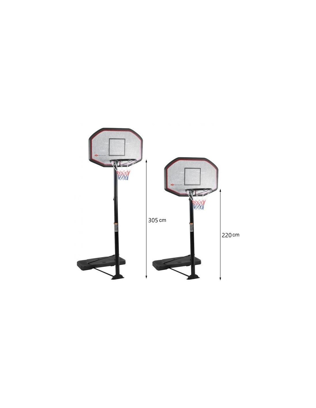 Højdejusterbart basketball mål, udført i et design af sortlakeret stål og polycarbonat. Målet måler 220 - 305 cm i højden og 105 cm i bredden. Foden er ment til ifyldning af sand, for at opnå vægtmodstand.