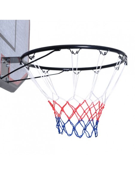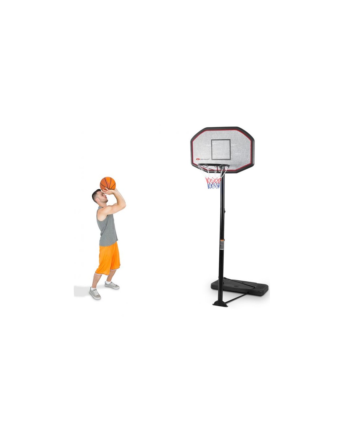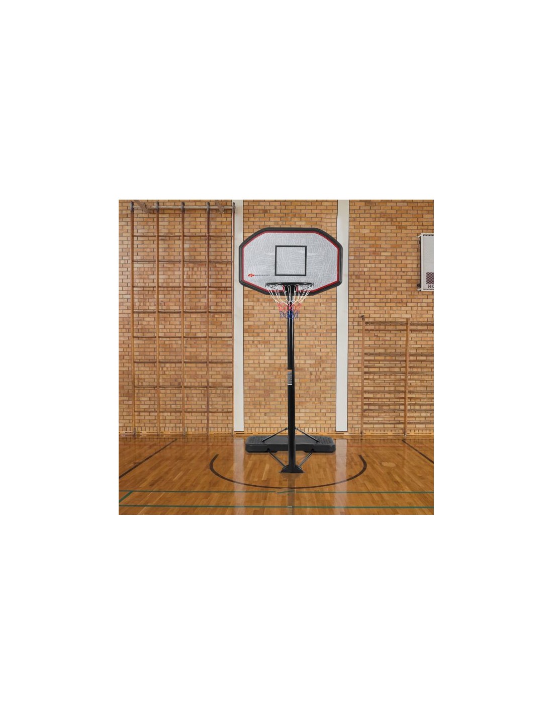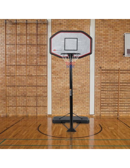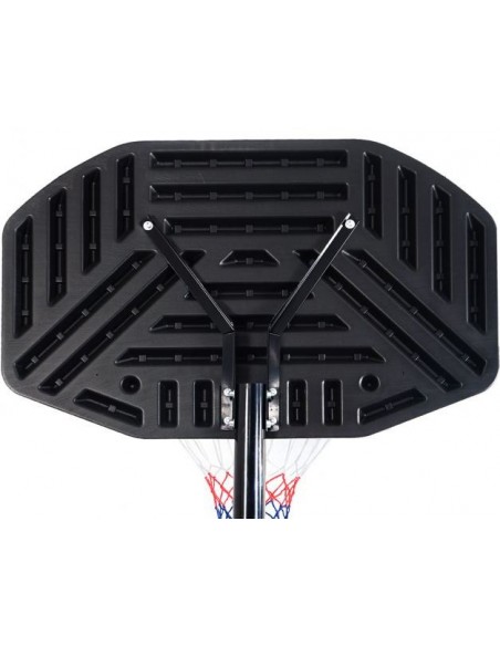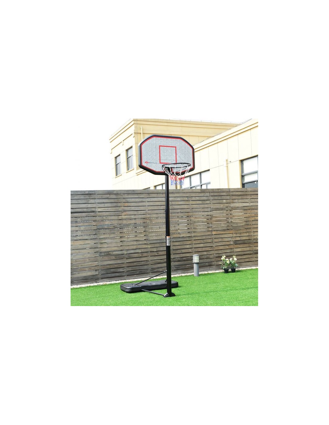 Højdejusterbart basketball mål, udført i et design af sortlakeret stål og polycarbonat. Målet måler 220 - 305 cm i højden og 105 cm i bredden. Foden er ment til ifyldning af sand, for at opnå vægtmodstand.