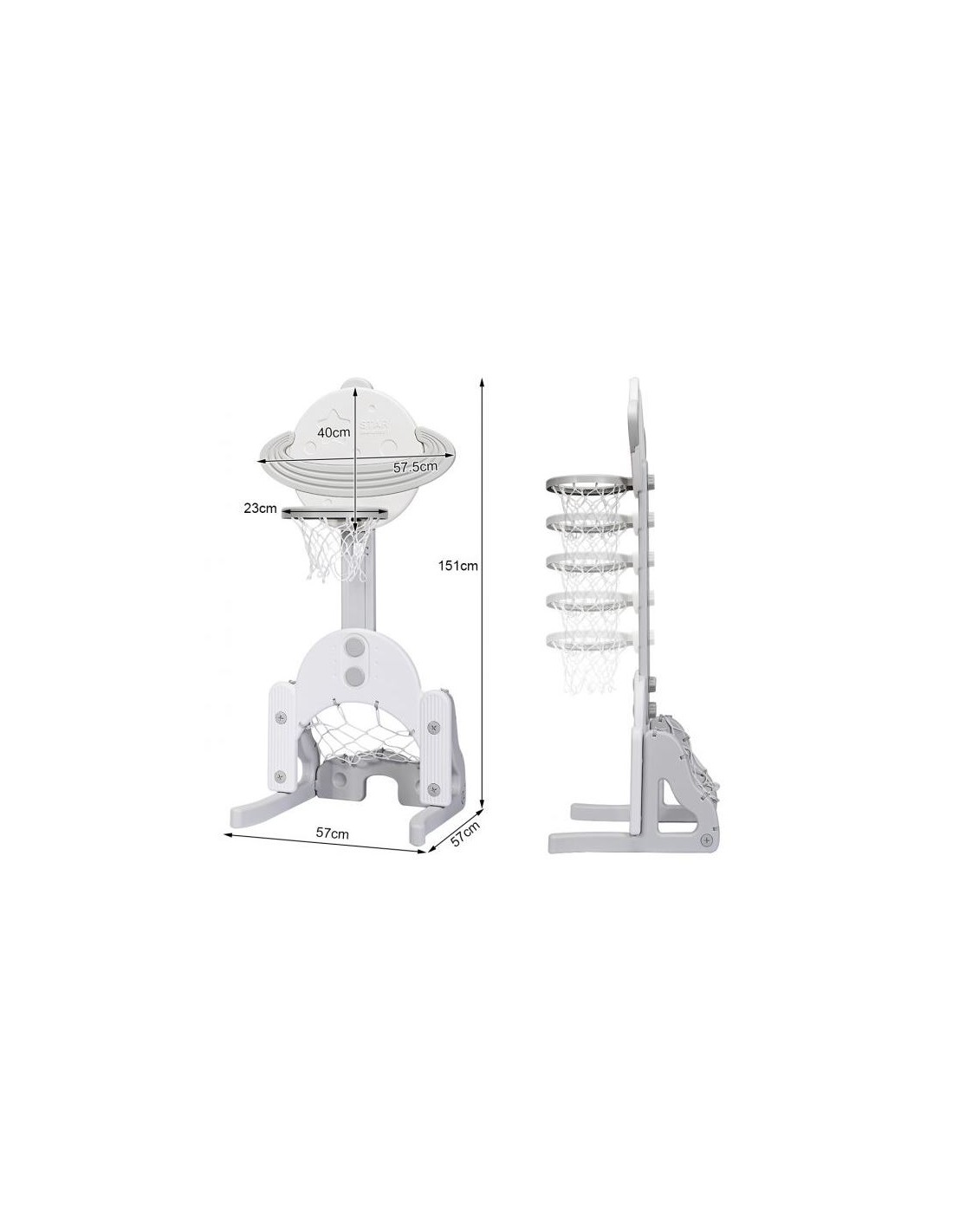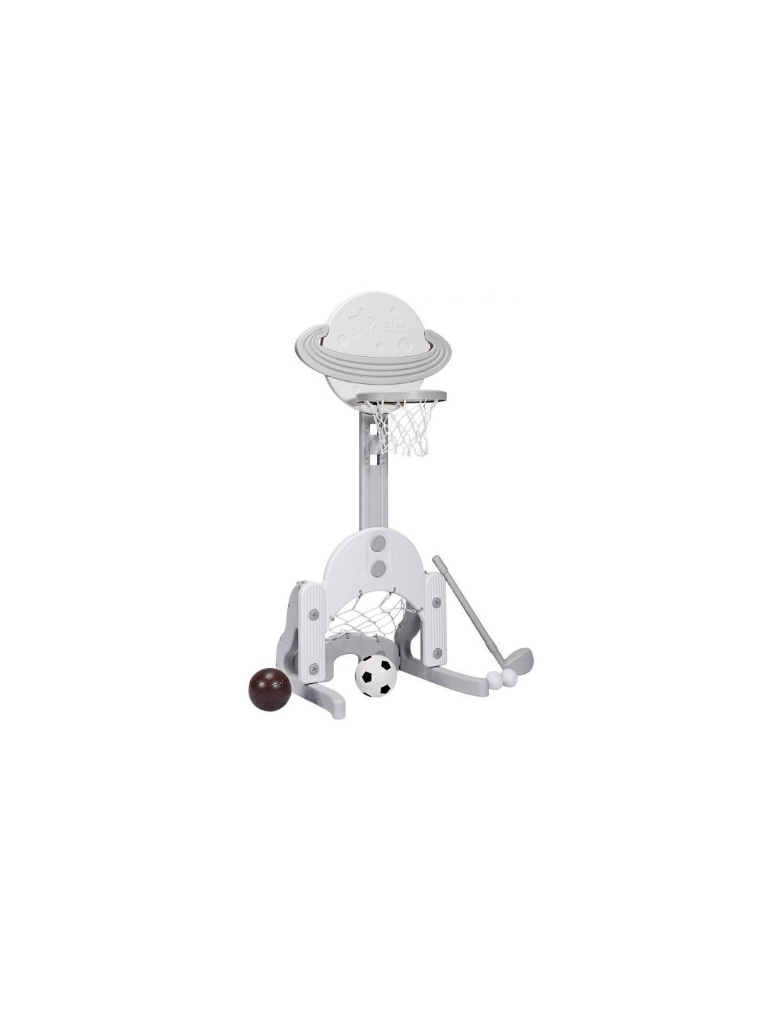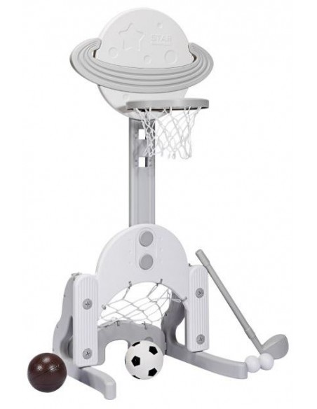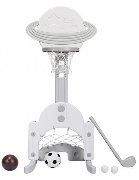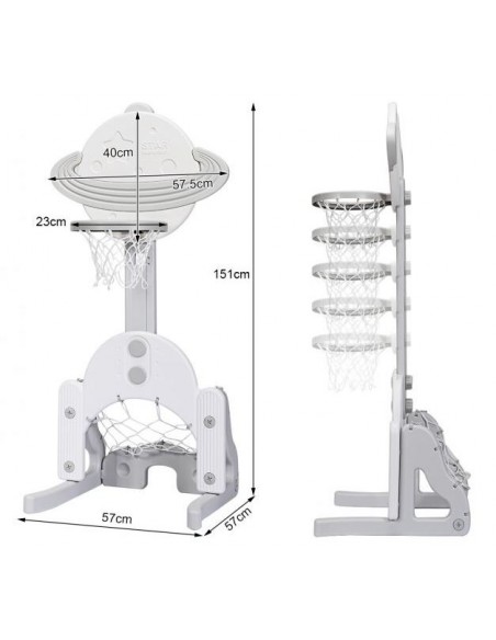 Højdejusterbart basketball mål, udført i et design af hvid og grå kunststof. Målet måler 111 - 151 cm i højden og 57 cm i bredden.