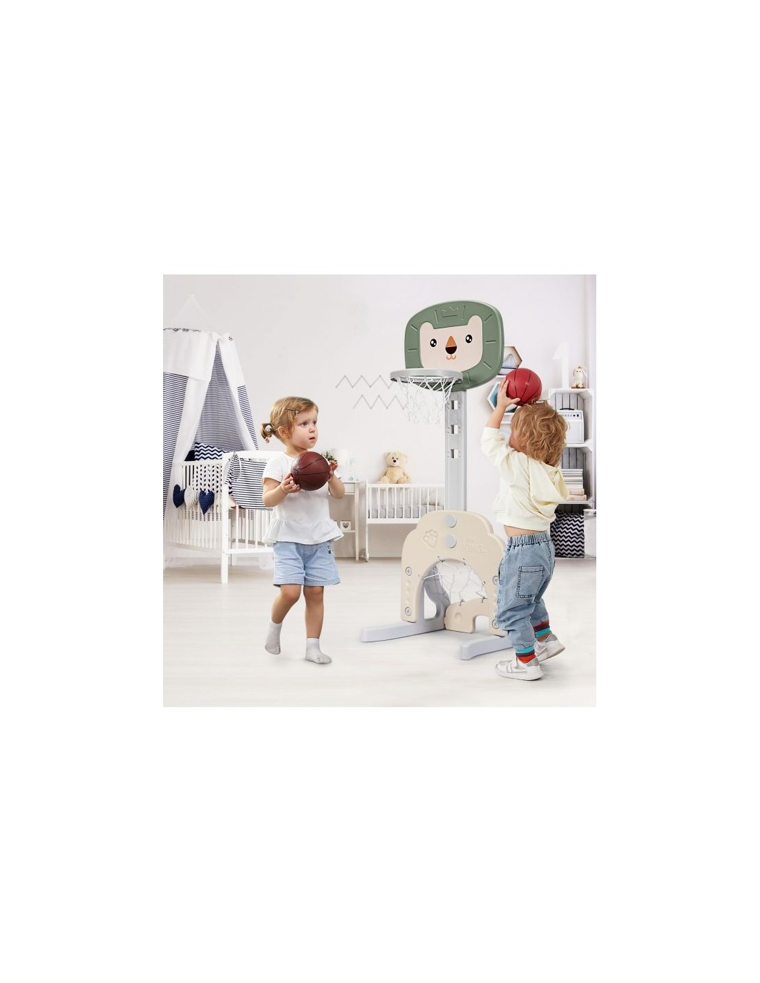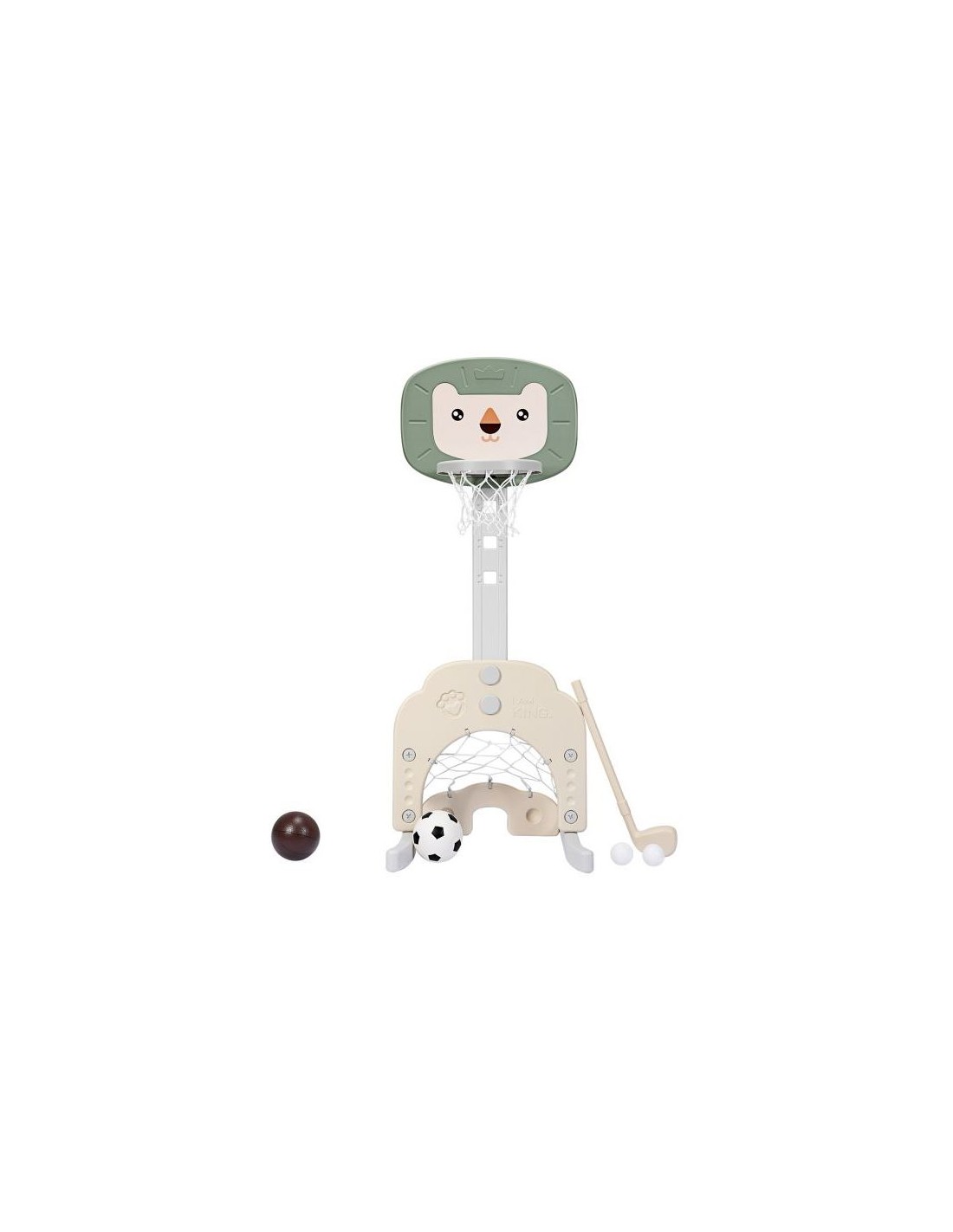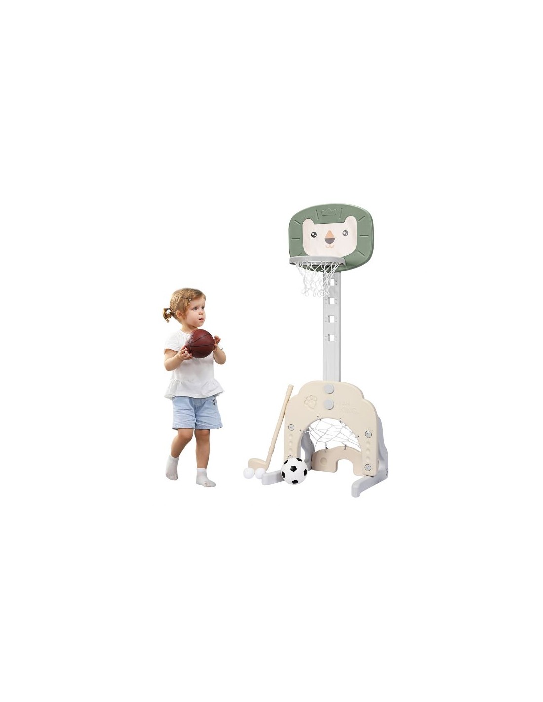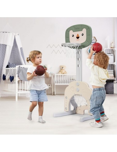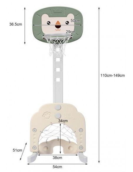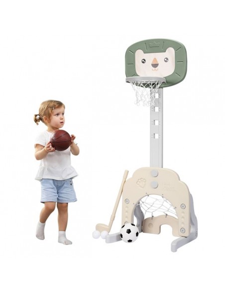 Højdejusterbart basketball mål, udført i et design af grøn og beige kunststof. Målet måler 110 - 149 cm i højden og 54 cm i bredden.