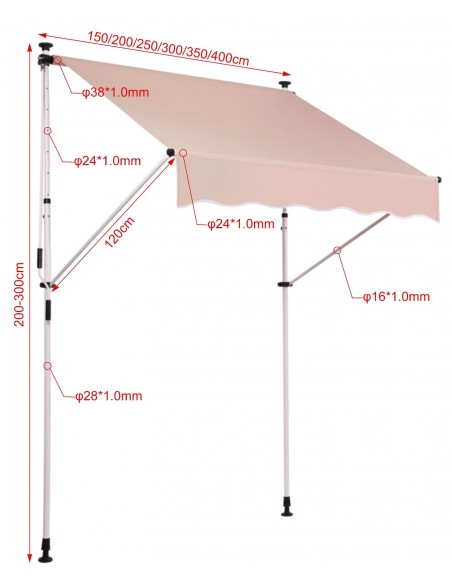 Westerly klemmemarkise i stål og polyester 350 x 120 cm - Beige