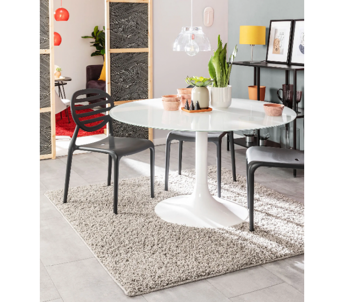 Dekorativt løst tæppe til entre, soveværelse eller stue, udført i et design af 100% polypropylene. Tæppet måler 200 x 200 cm i bredde og dybde.