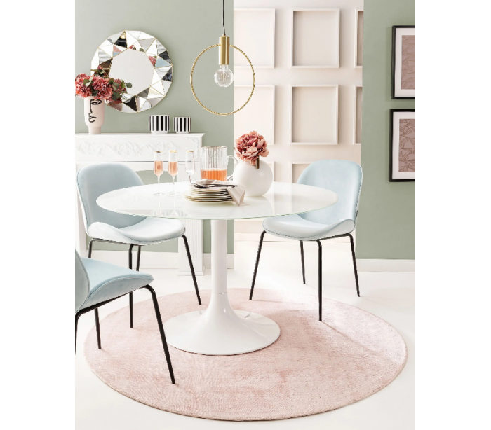 Dekorativt løst tæppe til entre, soveværelse eller stue, udført i et design af 100% viskose. Tæppet måler 160 cm i diameter.