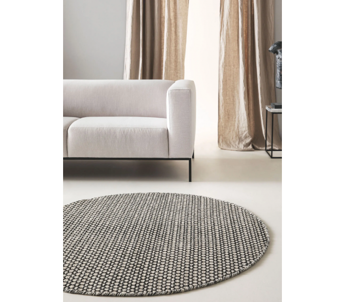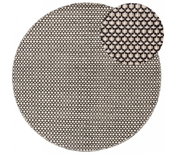 Hector rundt tæppe i uld Ø150 cm - Beige/Sort