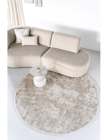 Muze rundt tæppe udført i et design af elfenbenshvid viscose med underside i bomuld. Et lækkert og blødt tæppe med diameter på 200 cm.