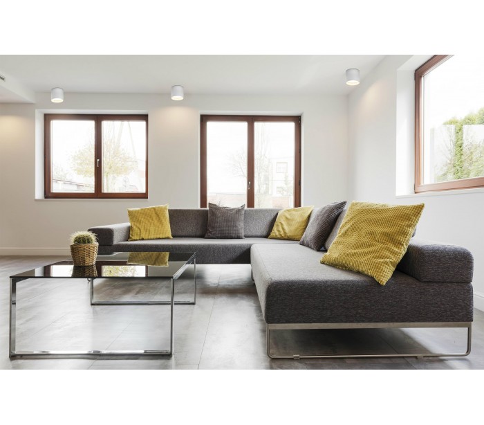 Påbygningsspot i et moderne design, fremstillet i hvidlakeret aluminium og med polycarbonat skærm. Spotten er med stærk indbygget 30W LED lyskilde (Inkl.) og måler 15 cm i diameter.