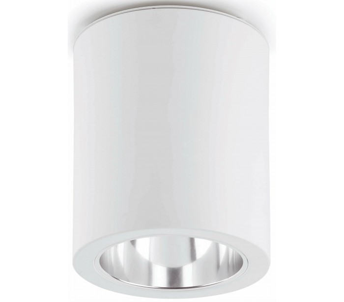 Påbygningsspot i et moderne design, fremstillet i hvidlakeret aluminium. Spotten anvender 1 x E27 lyskilde på max. 60W (Ekskl.) og måler 15,2 cm i diameter.