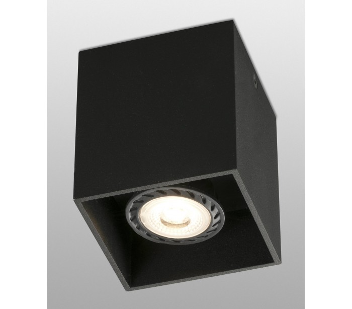Påbygningsspot i et moderne design, fremstillet i sortlakeret aluminium. Spotten anvender 1 x GU10 LED lyskilde på max. 50W (Ekskl.) og måler 8,2 cm i bredde og dybde.