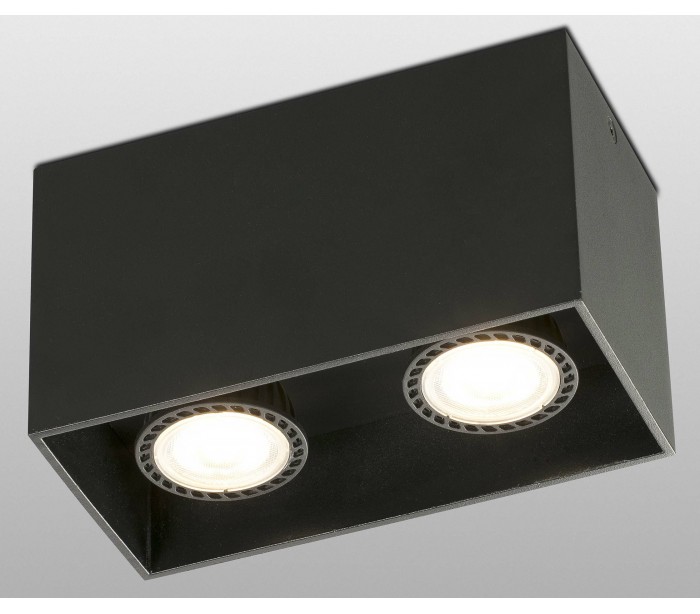 Dobbelt påbygningsspot i et moderne design, fremstillet i sortlakeret aluminium. Spotten anvender 2 x GU10 LED lyskilder på max. 50W (Ekskl.) og måler 16,5 x 8,2 cm i bredde og dybde.