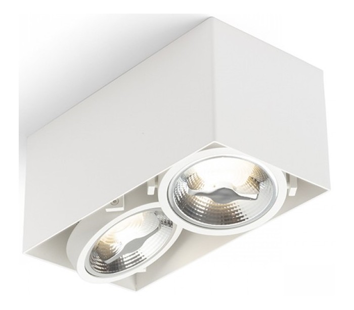 Påbygningsspot i et kipbart design fremstillet af hvidlakeret aluminium. Lampen er udstyret med 2 x LED lyskilder på 15W.