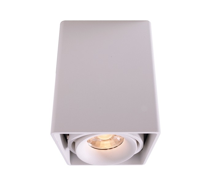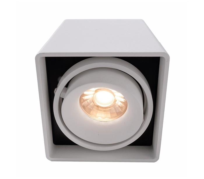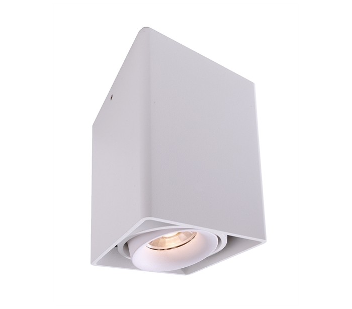 Påbygningsspot i et stilrent design, fremstillet i hvidlakeret aluminium. Spotten kommer med 1 lyshoved, der kan roteres og justeres i den ønskede retning. Lampen benytter 1 x GU10 lyskilde (Ekskl.).