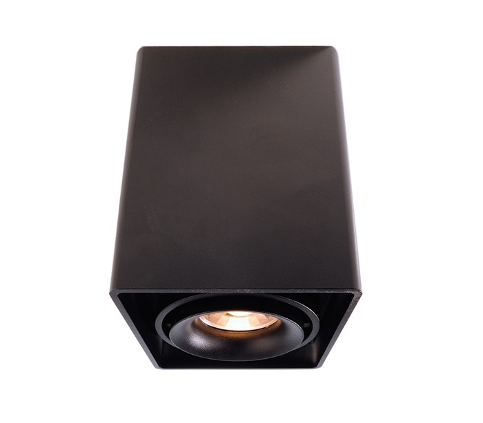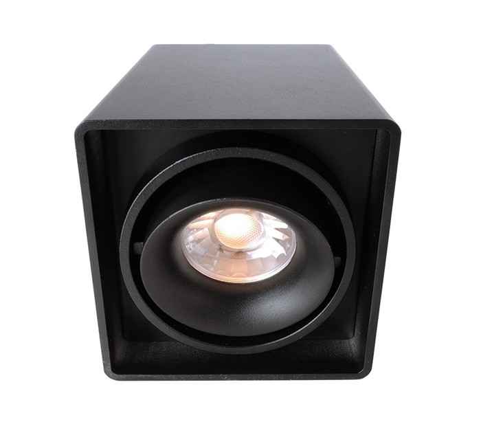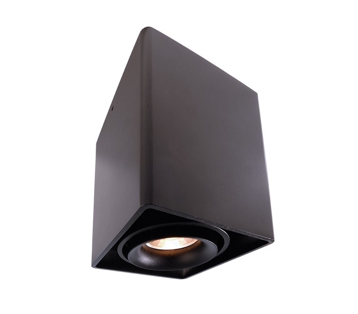 Påbygningsspot i et stilrent design, fremstillet i sortlakeret aluminium. Spotten kommer med 1 lyshoved, der kan roteres og justeres i den ønskede retning. Lampen benytter 1 x GU10 lyskilde (Ekskl.).