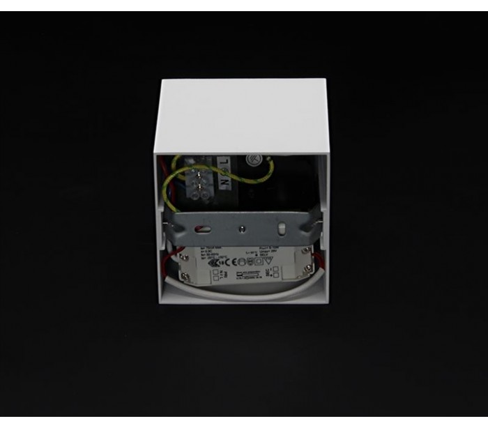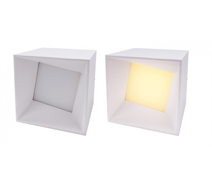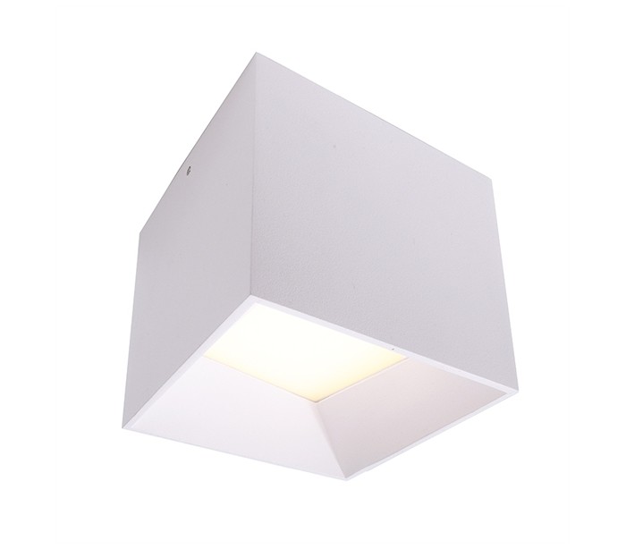 Påbygningsspot i et moderne design, fremstillet i hvidlakeret aluminium. Spotten har indbygget LED lyskilde på 10W.