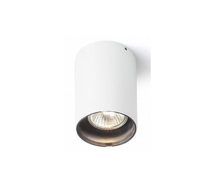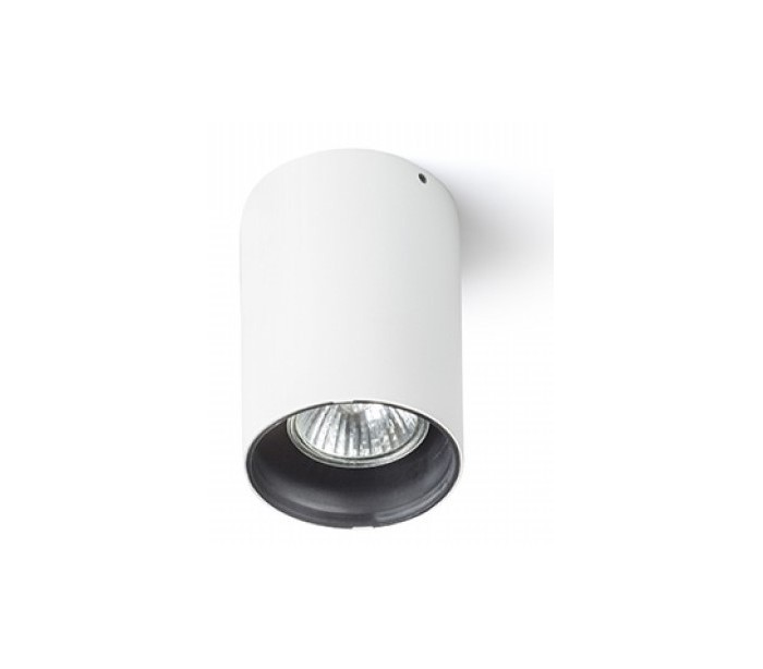 Påbygningsspot i et design fremstillet af hvidlakeret aluminium og med sort inderside. Lampen benytter 1 x GU10 lyskilde på max. 35W (Ekskl.). Der kan anvendes LED lyskilde i lampen. Lampen kobles direkte på lysnettet, 230V.