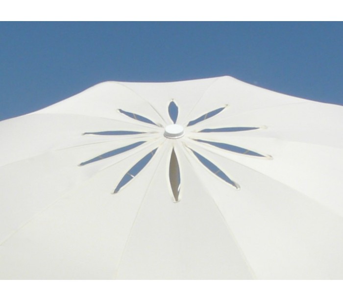 Maffei Bea parasol fremstillet i et design af hvid UV-beskyttet (50+) og vandtæt polyester og med stang i hvidlakeret stål. Parasollen måler 250 cm i diameter og med en højde på 250 cm.