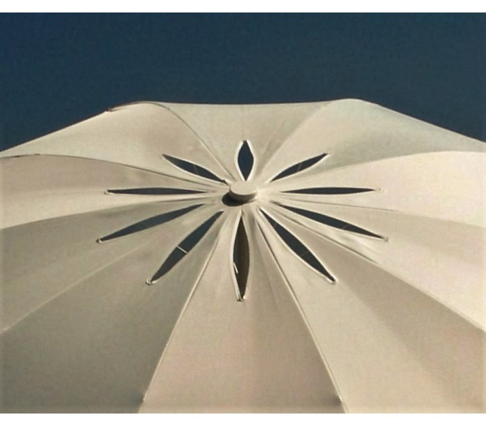 Maffei Bea parasol fremstillet i et design af naturfarvet UV-beskyttet (50+) og vandtæt polyester og med stang i hvidlakeret stål. Parasollen måler 250 cm i diameter og med en højde på 250 cm.