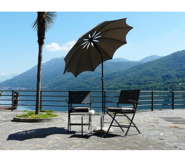 Maffei Bea parasol fremstillet i et design af taupefarvet UV-beskyttet (50+) og vandtæt polyester og med stang i sortlakeret stål. Parasollen måler 200 cm i diameter og med en højde på 230 cm.
