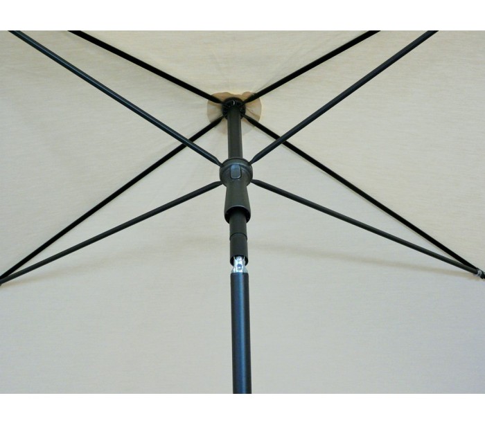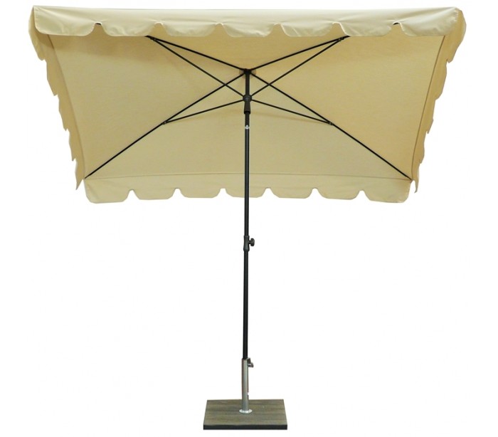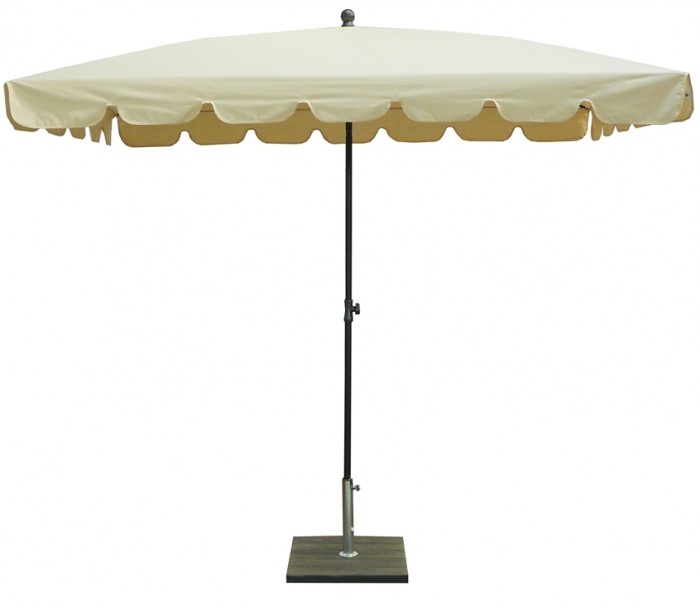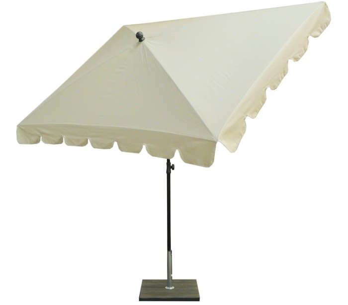 Maffei Allegro parasol fremstillet i et design af naturfarvet UV-beskyttet (50+) og vandtæt polyester og med stang i sortlakeret stål. Parasollen måler 240 x 150 cm i bredde og dybde og med en højde på 250 cm.