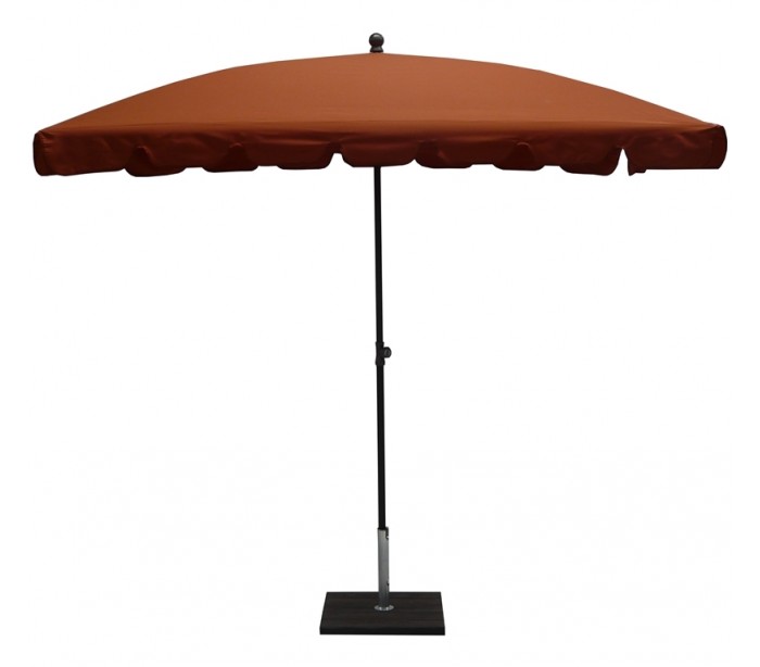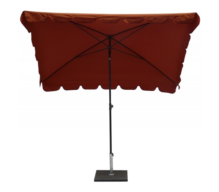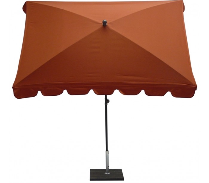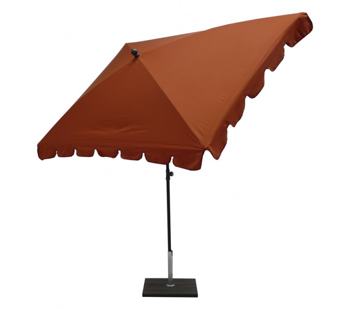 Maffei Allegro parasol fremstillet i et design af terracotta farvet UV-beskyttet (50+) og vandtæt texma og med stang i sortlakeret stål. Parasollen måler 240 x 150 cm i bredde og dybde og med en højde på 250 cm.