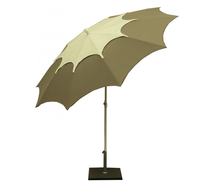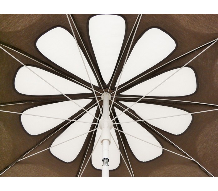 Maffei Flos parasol fremstillet i et design af taupefarvet UV-beskyttet (20-50+) dralon og med stang i hvidlakeret stål. Parasollen måler 250 cm i diameter og med en højde på 250 cm. Parasollen er fremstillet med luftkanal i hvid blomstret design.