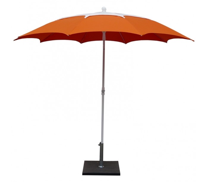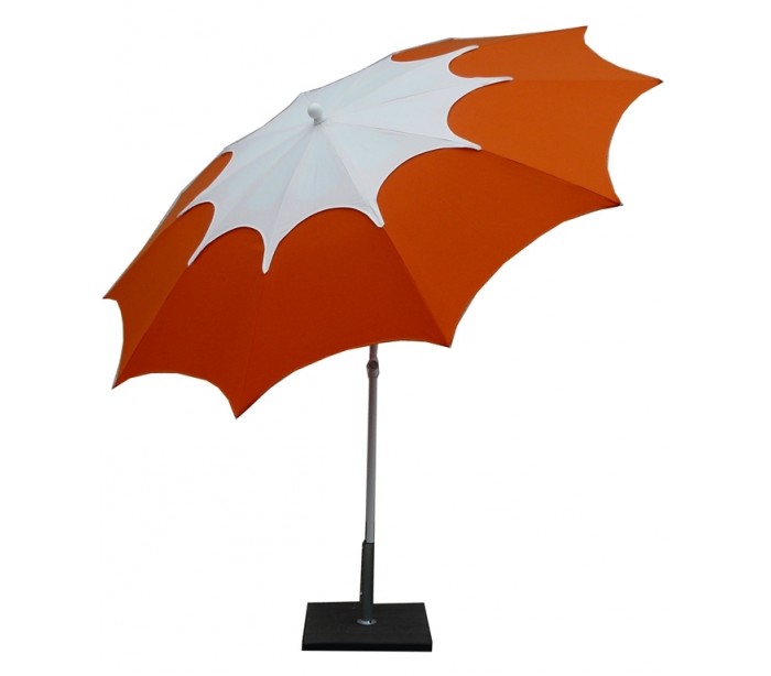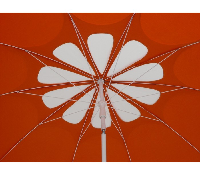 Maffei Flos parasol fremstillet i et design af orange UV-beskyttet (20-50+) dralon og med stang i hvidlakeret stål. Parasollen måler 250 cm i diameter og med en højde på 250 cm. Parasollen er fremstillet med luftkanal i hvid blomstret design.