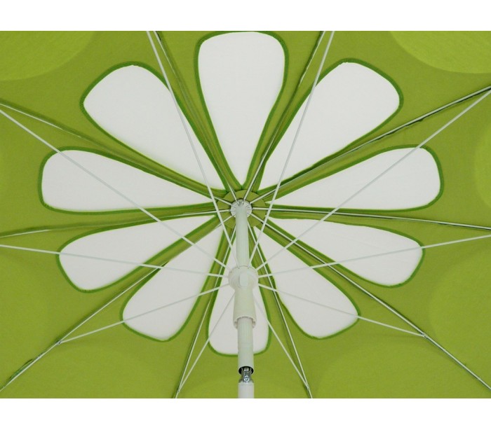 Maffei Flos parasol fremstillet i et design af limefarvet UV-beskyttet (20-50+) dralon og med stang i hvidlakeret stål. Parasollen måler 250 cm i diameter og med en højde på 250 cm. Parasollen er fremstillet med luftkanal i hvid blomstret design.