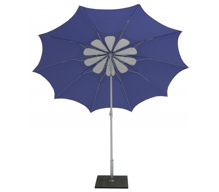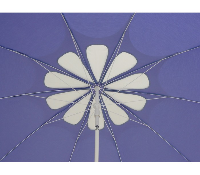 Maffei Flos parasol fremstillet i et design af lavendel farvet UV-beskyttet (20-50+) dralon og med stang i hvidlakeret stål. Parasollen måler 250 cm i diameter og med en højde på 250 cm. Parasollen er fremstillet med luftkanal i hvid blomstret design.