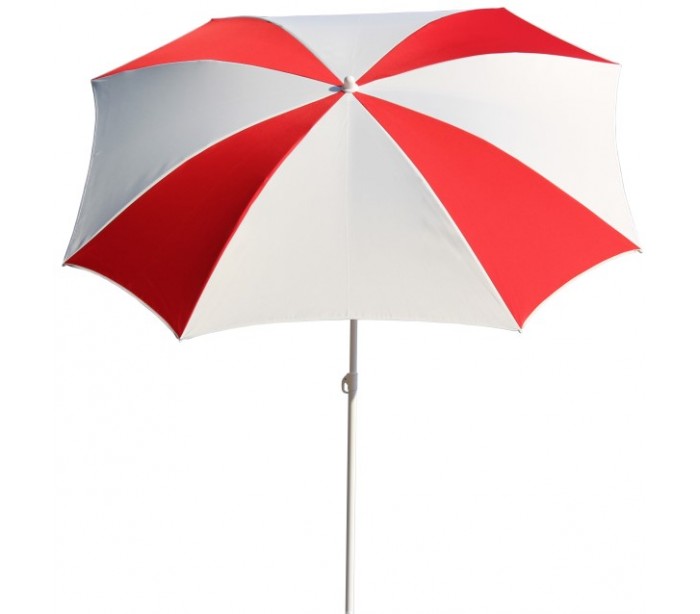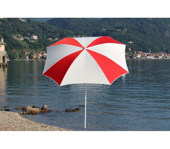 Maffei Malta parasol fremstillet i et design af hvid og rød UV-beskyttet (50+) og vandtæt polyester og med stang i hvidlakeret stål. Parasollen måler 200 cm i diameter og med en højde på 215 cm.