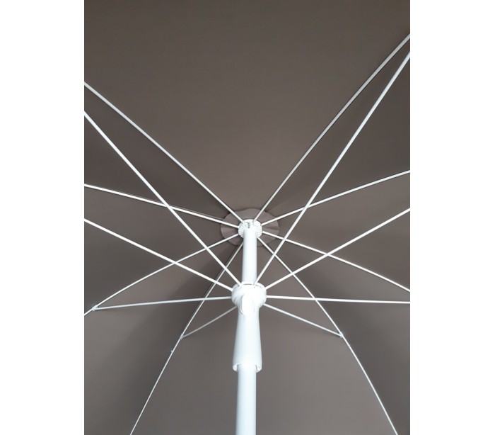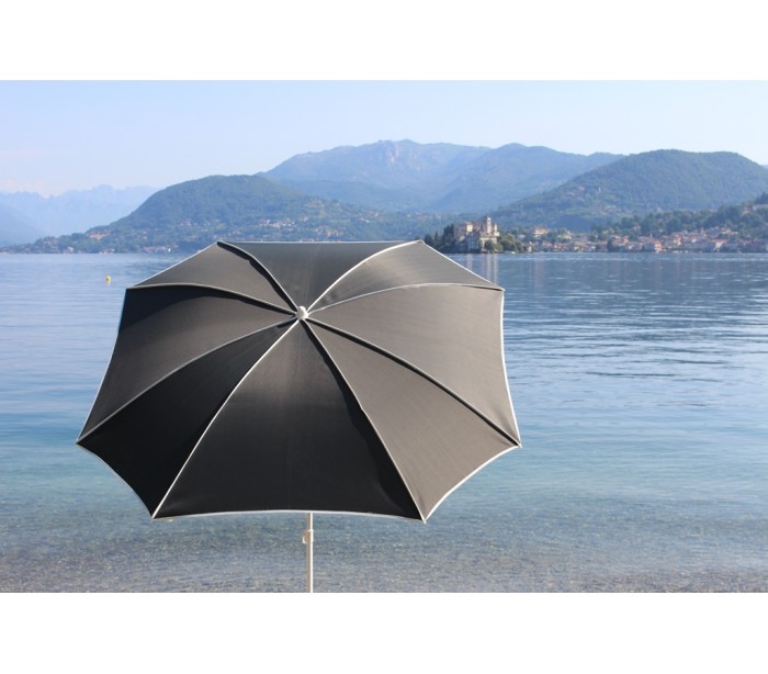 Maffei Malta parasol fremstillet i et design af antracitfarvet UV-beskyttet (50+) og vandtæt polyester og med stang i hvidlakeret stål. Parasollen måler 200 cm i diameter og med en højde på 215 cm.