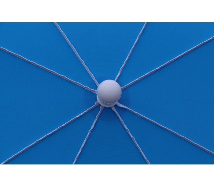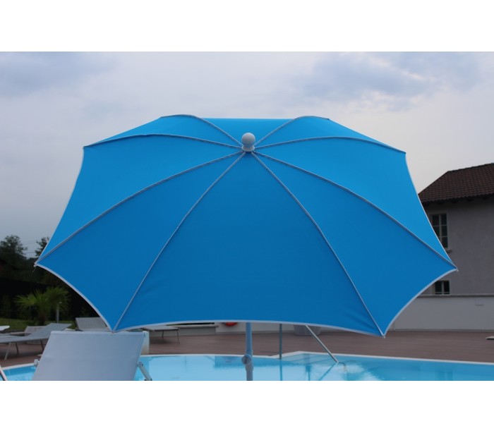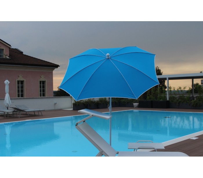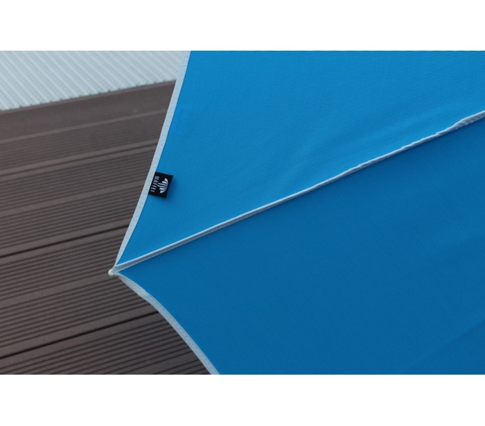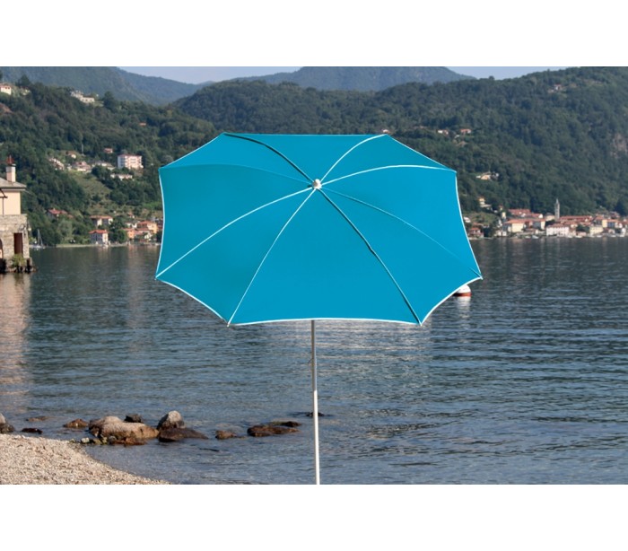 Maffei Malta parasol fremstillet i et design af turkis UV-beskyttet (50+) og vandtæt texma og med stang i hvidlakeret stål. Parasollen måler 200 cm i diameter og med en højde på 215 cm.