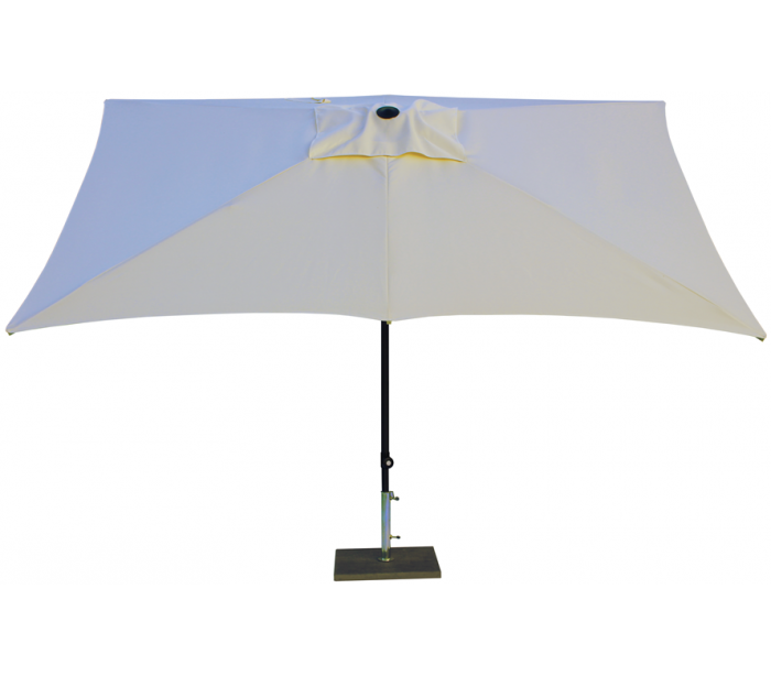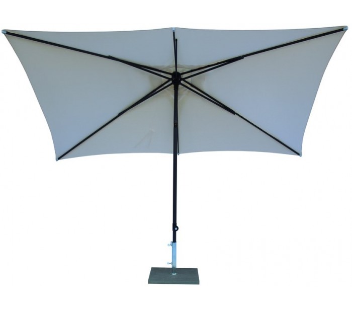 Maffei Kronos parasol fremstillet i et design af naturfarvet UV-beskyttet (50+) og vandtæt polyester og med stang i mørkegrålakeret aluminium. Parasollen måler 200 x 300 cm i bredde og dybde og med en højde på 240 cm og frihøjde under parasol på 205 cm.