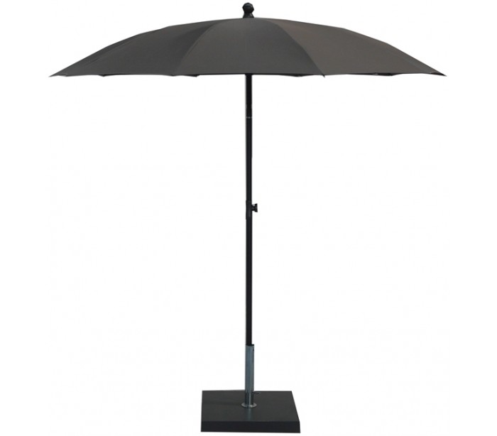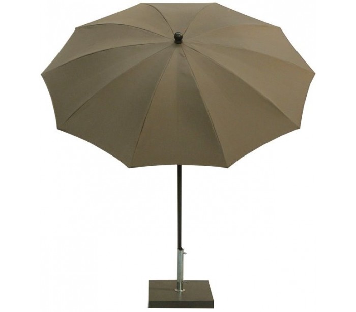 Maffei Kronos parasol fremstillet i et design af taupe UV-beskyttet (50+) og vandtæt polyester og med stang i sortlakeret stål. Parasollen måler 200 cm i diameter og med en højde på 230 cm.