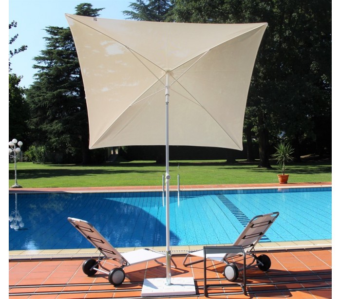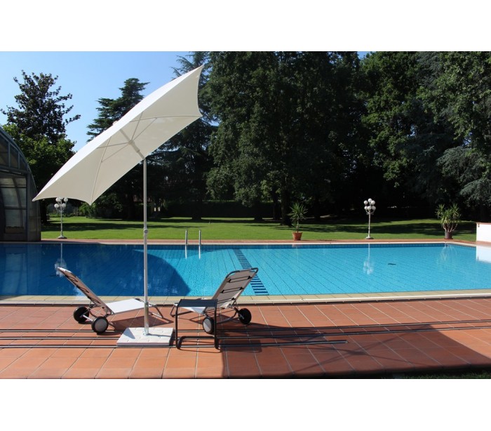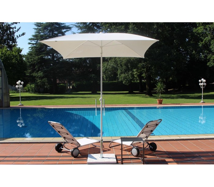Maffei Pool parasol fremstillet i et design af hvid batyline, der afskærmer men ikke udelukker solens lys. Stang i hvidlakeret stål. Parasollen måler 180 x 180 cm i bredde og dybde og med en højde på 250 cm.
