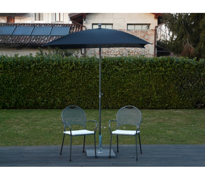 Maffei Pool parasol fremstillet i et design af sort batyline, der afskærmer men ikke udelukker solens lys. Stang i sortlakeret stål. Parasollen måler 180 x 180 cm i bredde og dybde og med en højde på 250 cm.