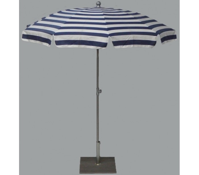 Maffei Inox parasol fremstillet i et design af hvid og blå stribet UV-beskyttet (20-50+) dralon og med stang i rustfri stål. Parasollen måler 200 cm i diameter og med en højde på 230 cm.
