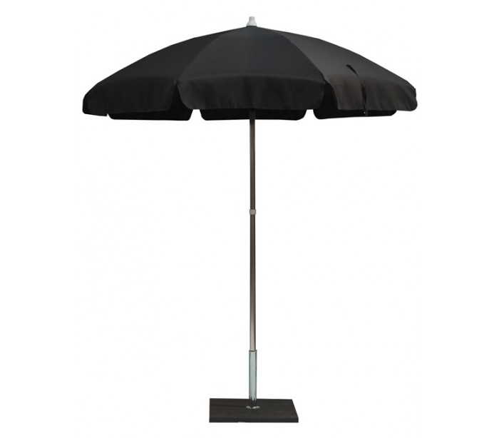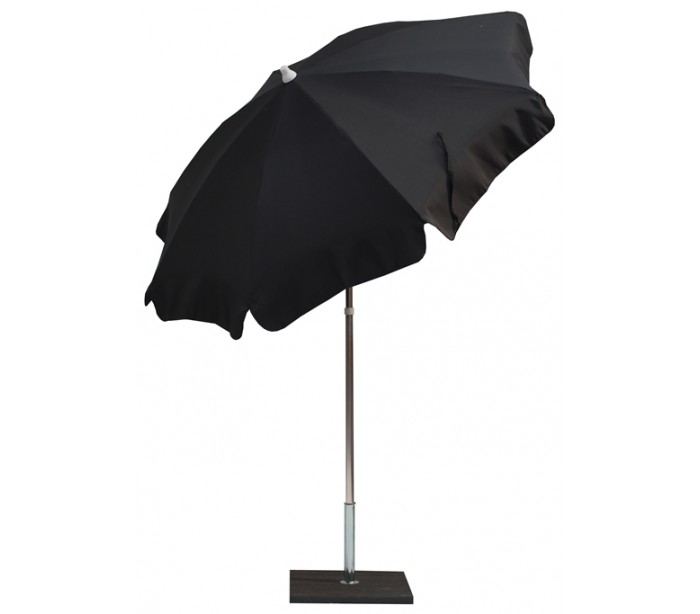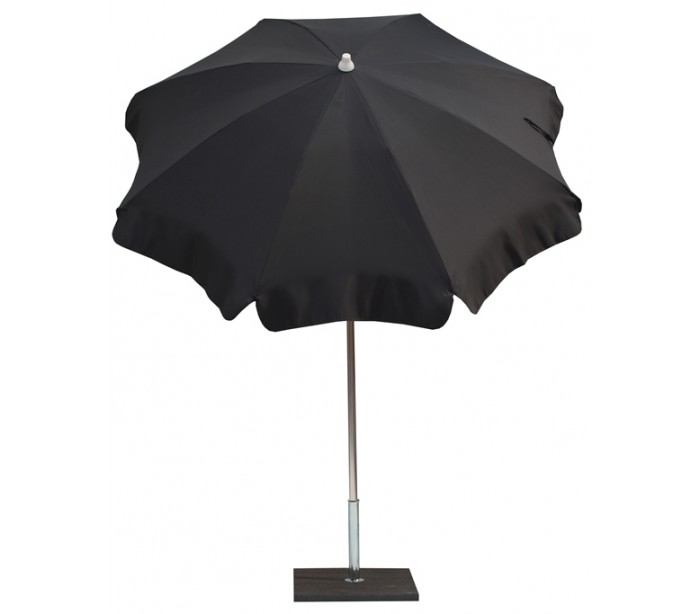Maffei Alux parasol fremstillet i et design af antracit UV-beskyttet (50+) og vandtæt polyester og med stang i sølvfarvet aluminium. Parasollen måler 200 cm i diameter og med en højde på 215 cm.