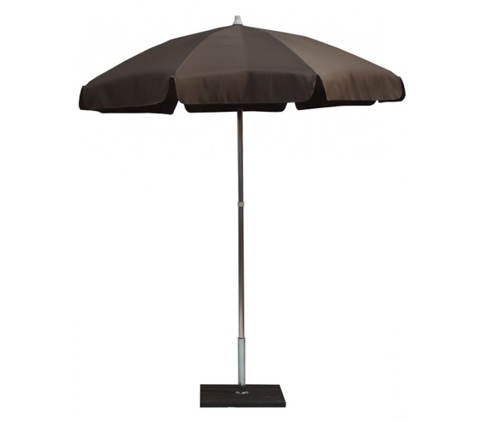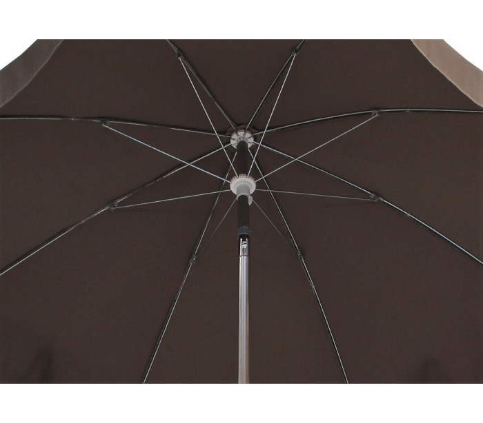 Maffei Alux parasol fremstillet i et design af taupe UV-beskyttet (50+) og vandtæt polyester og med stang i sølvfarvet aluminium. Parasollen måler 200 cm i diameter og med en højde på 215 cm.
