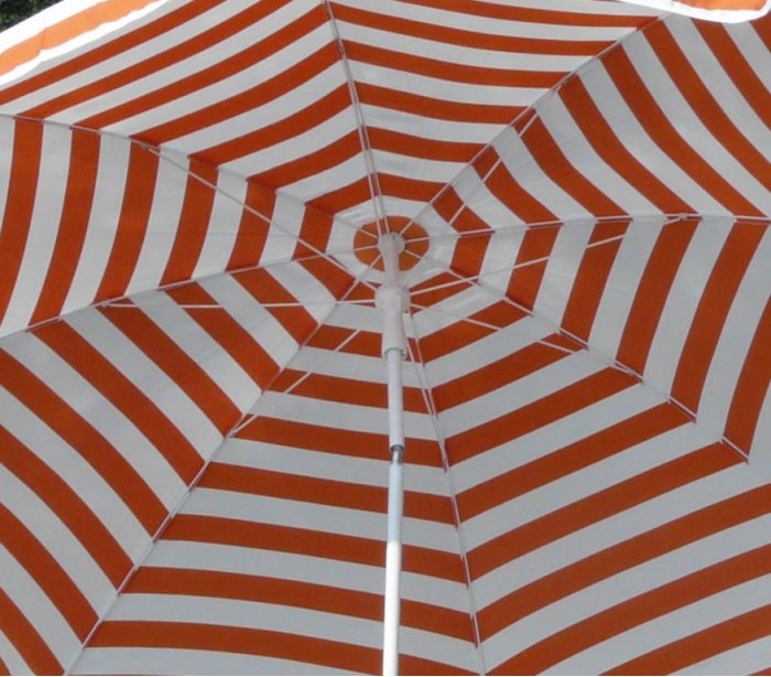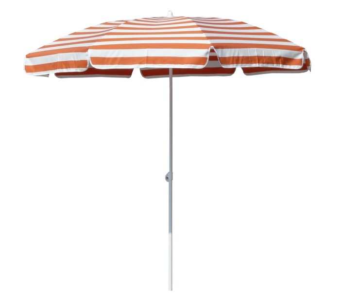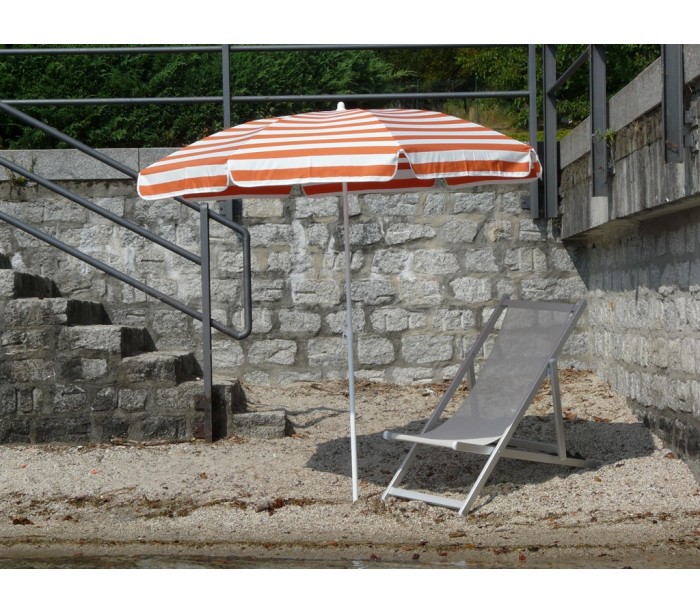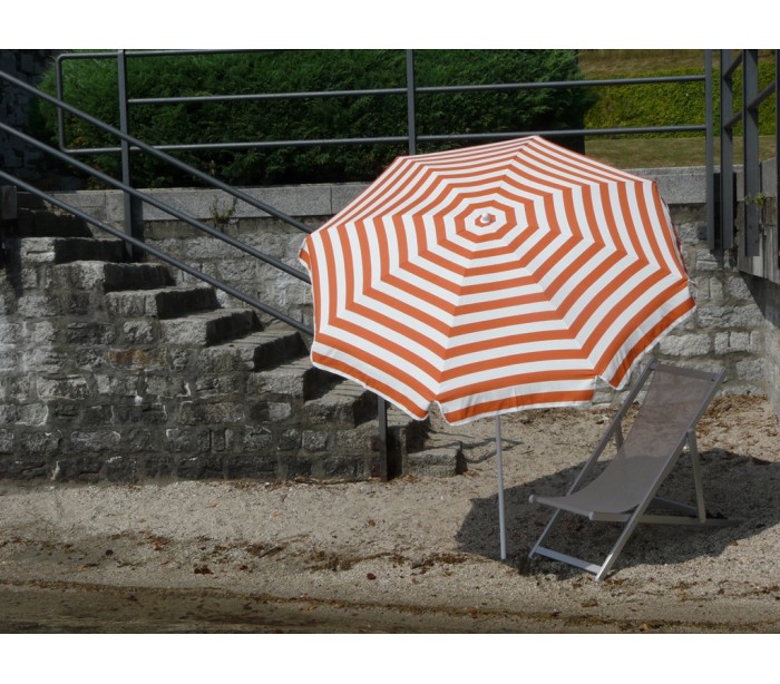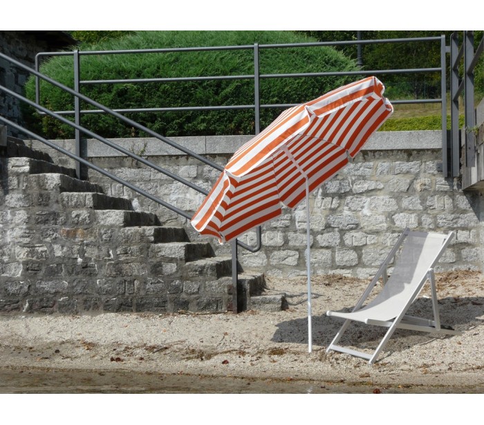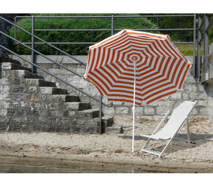 Maffei Mare parasol fremstillet i et design af hvid og orange stribet UV-beskyttet (20 - 50+) dralon og med stang i hvidlakeret stål. Parasollen måler 200 cm i diameter og med en højde på 215 cm.