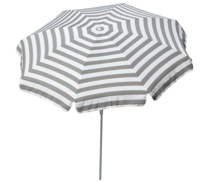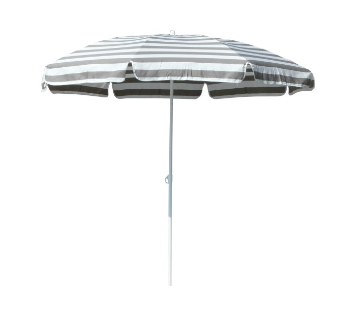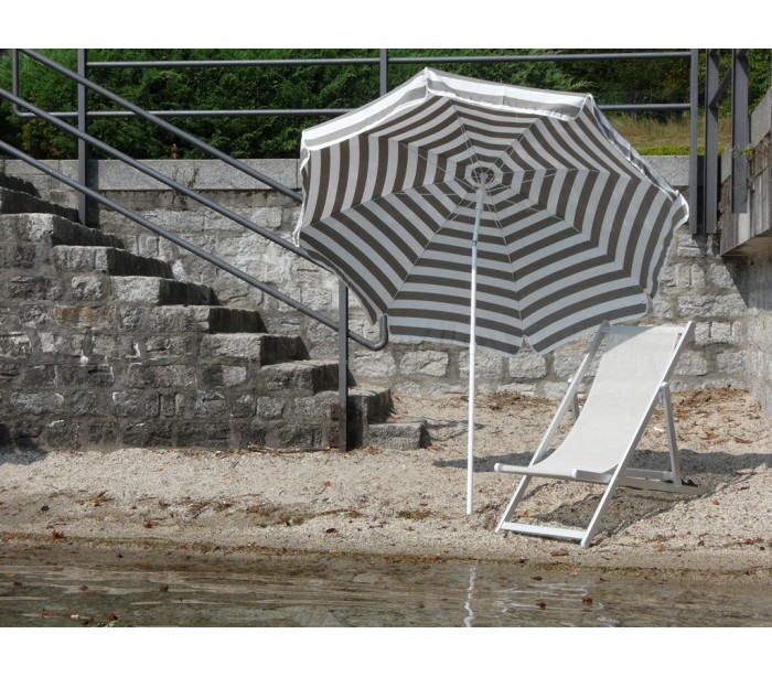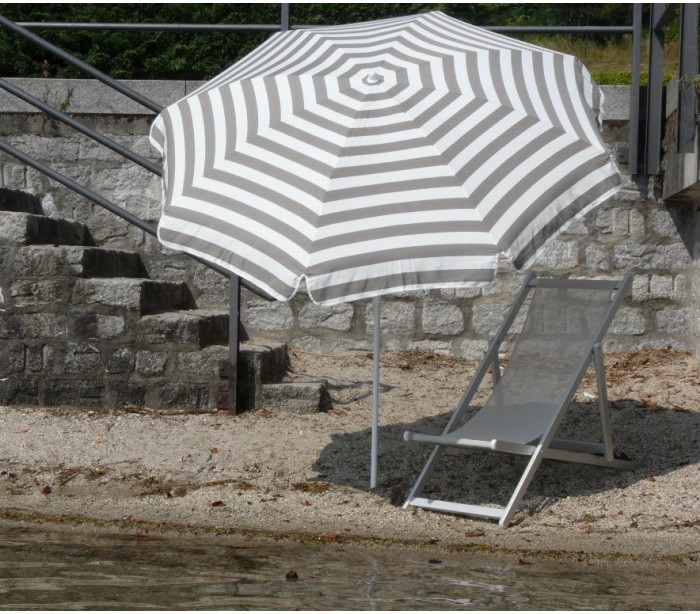 Maffei Mare parasol fremstillet i et design af hvid og taupe stribet UV-beskyttet (20 - 50+) dralon og med stang i hvidlakeret stål. Parasollen måler 200 cm i diameter og med en højde på 215 cm.