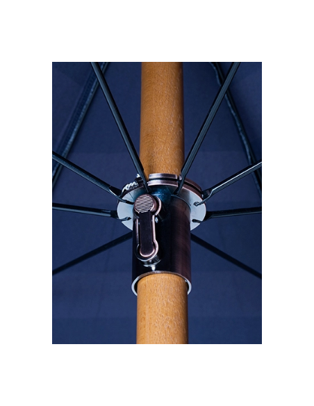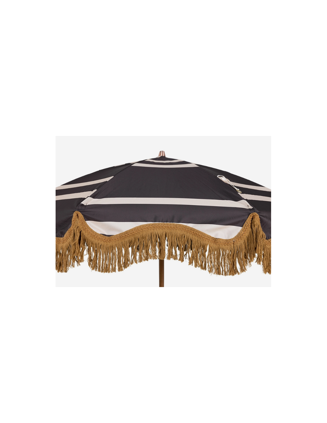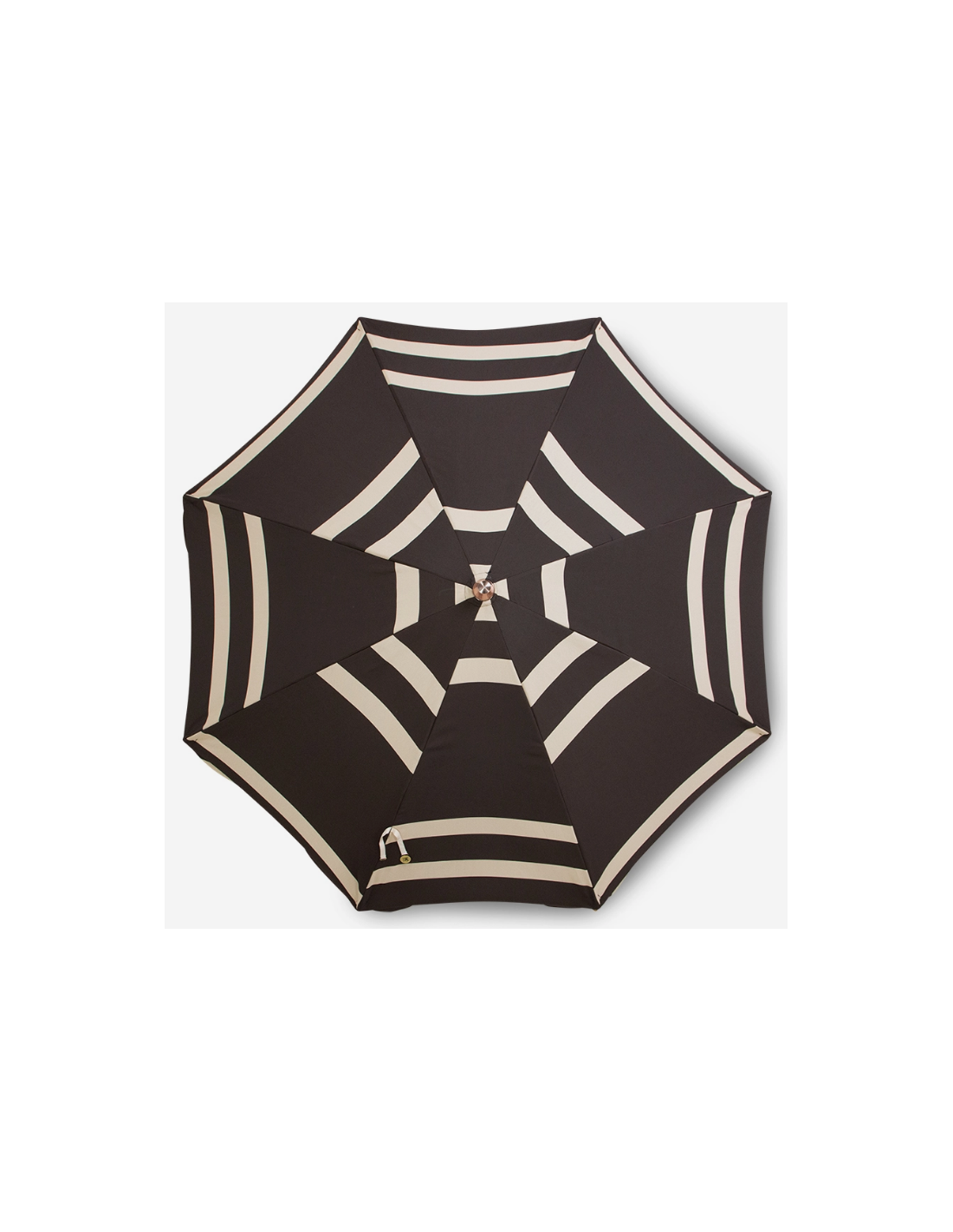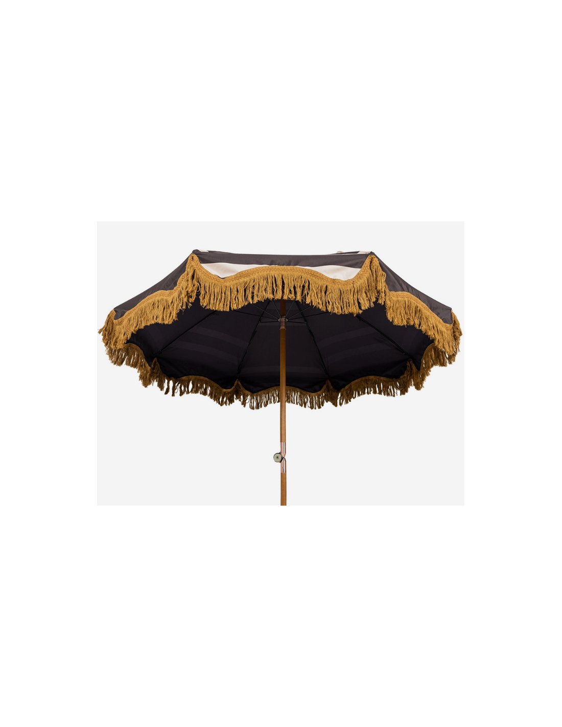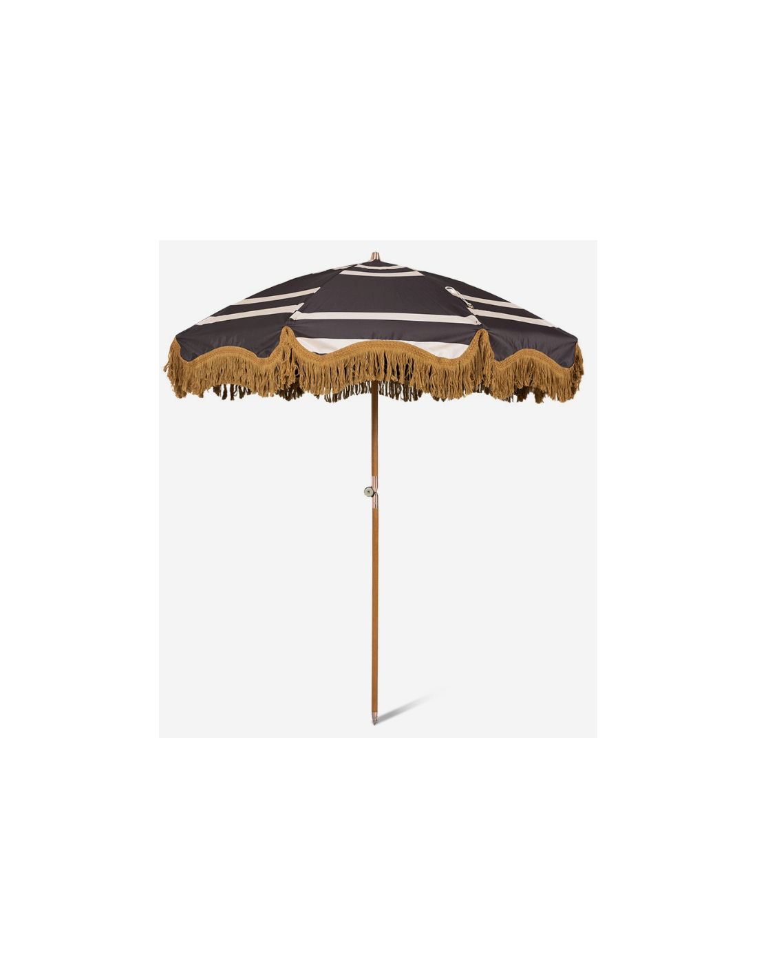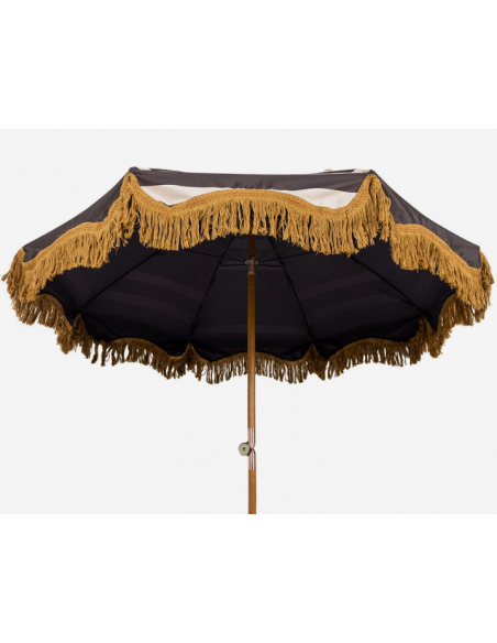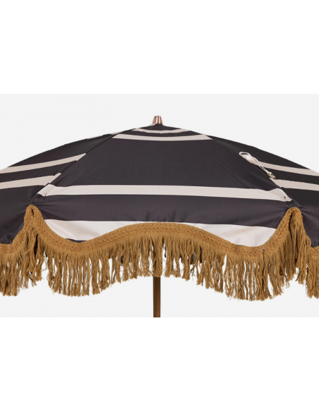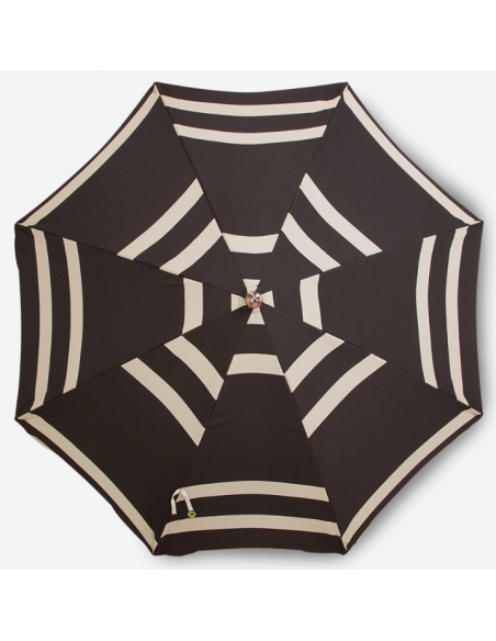 Strandparasol udført i et sandt retropræget design, i beige og brun polyester. Stangen er udført i solid bøgetræ og med kipfunktion. Parasollen måler 200 cm i skærmdiameter og 230 cm i højden.