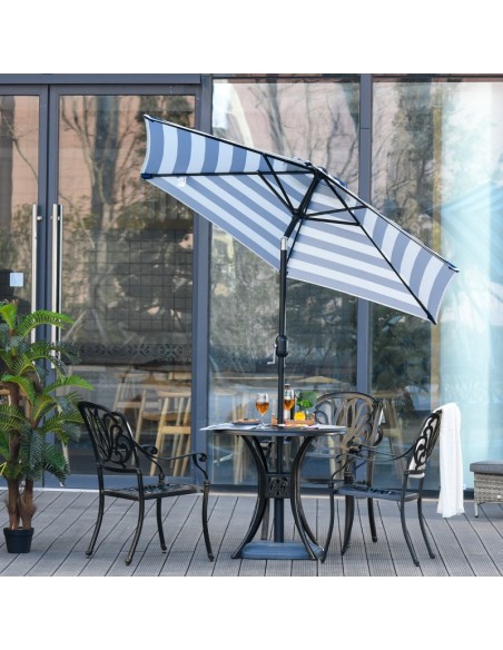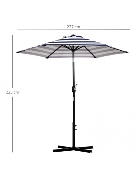 Parasol med tilt i metal og polyester H225 x Ø227 cm - Blå/Hvid