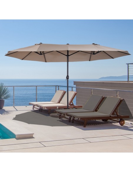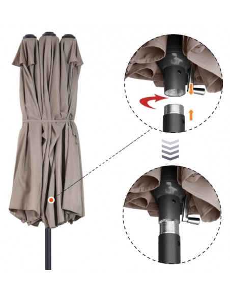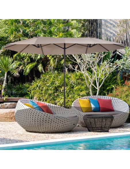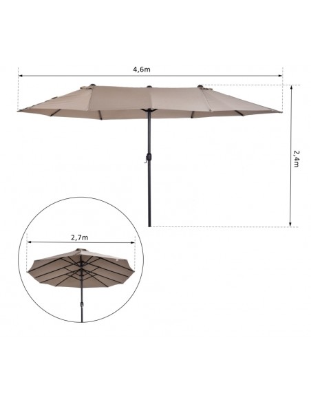 Oval parasol i metal og polyester H240 x B460 x D270 cm - Kaffe