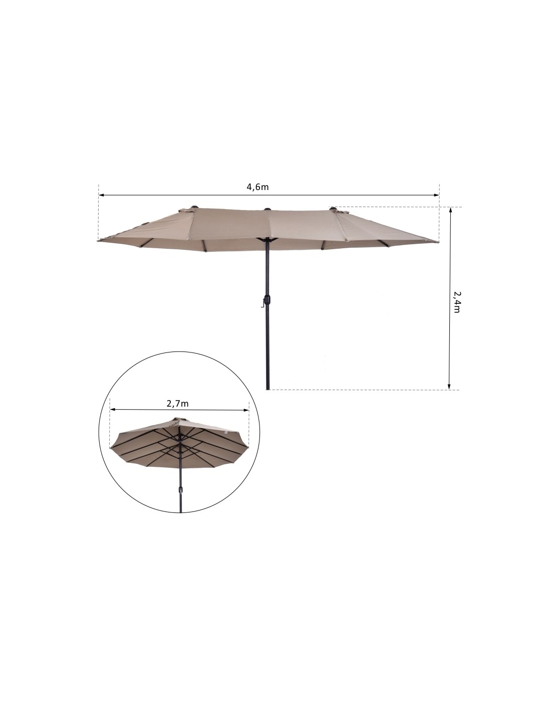 Oval parasol udført i metal og polyester. Parasollen måler 460 x 270 cm i diameter og 240 cm i højden. Bemærk venligst, at fod ikke medfølger.